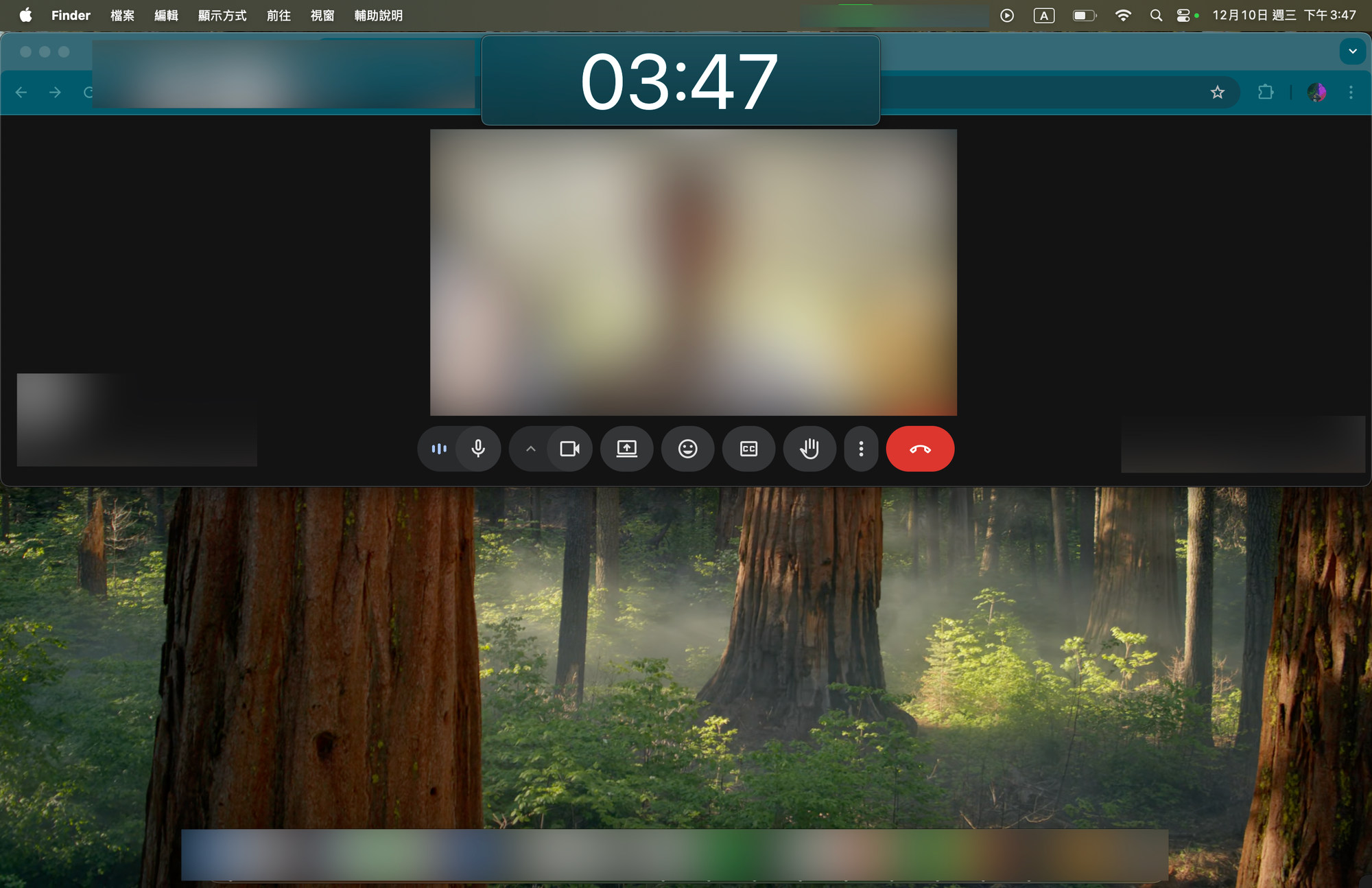 Until recently, I bumped into Clock up Top. It's a minimalistic clock app that does just one simple thing: a big, floating clock that stays on top. With that, my desktop would look like this when I'm on a video call: